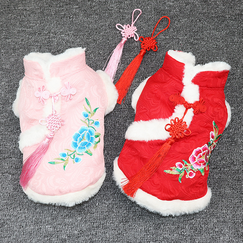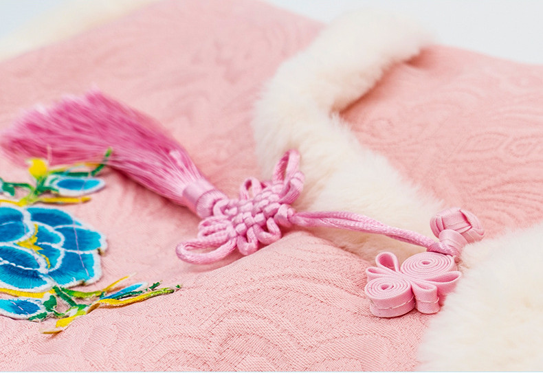 The cuffs, collar and hem of the clothes are made of rabbit fur.
