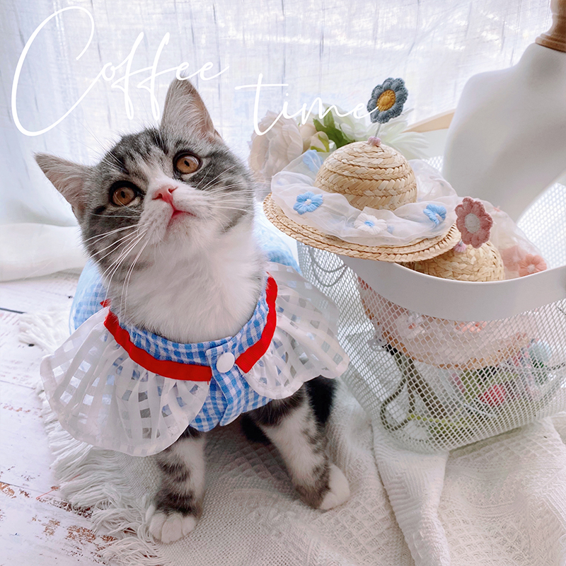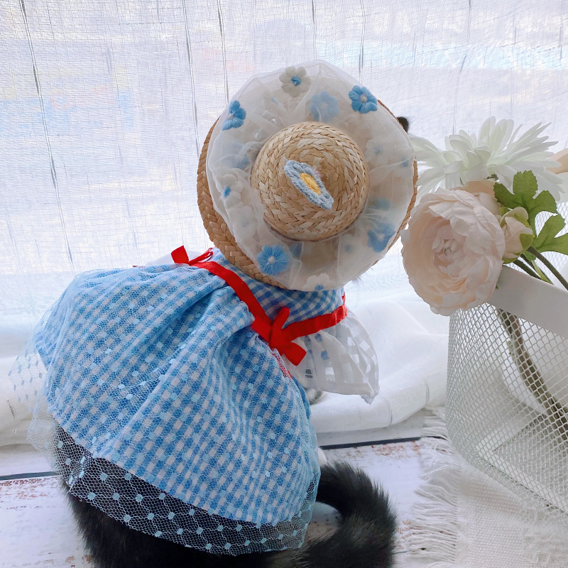 Colour:Red ribbon blue mesh tutu skirt pink seersucker straw hat blue seersucker straw hat