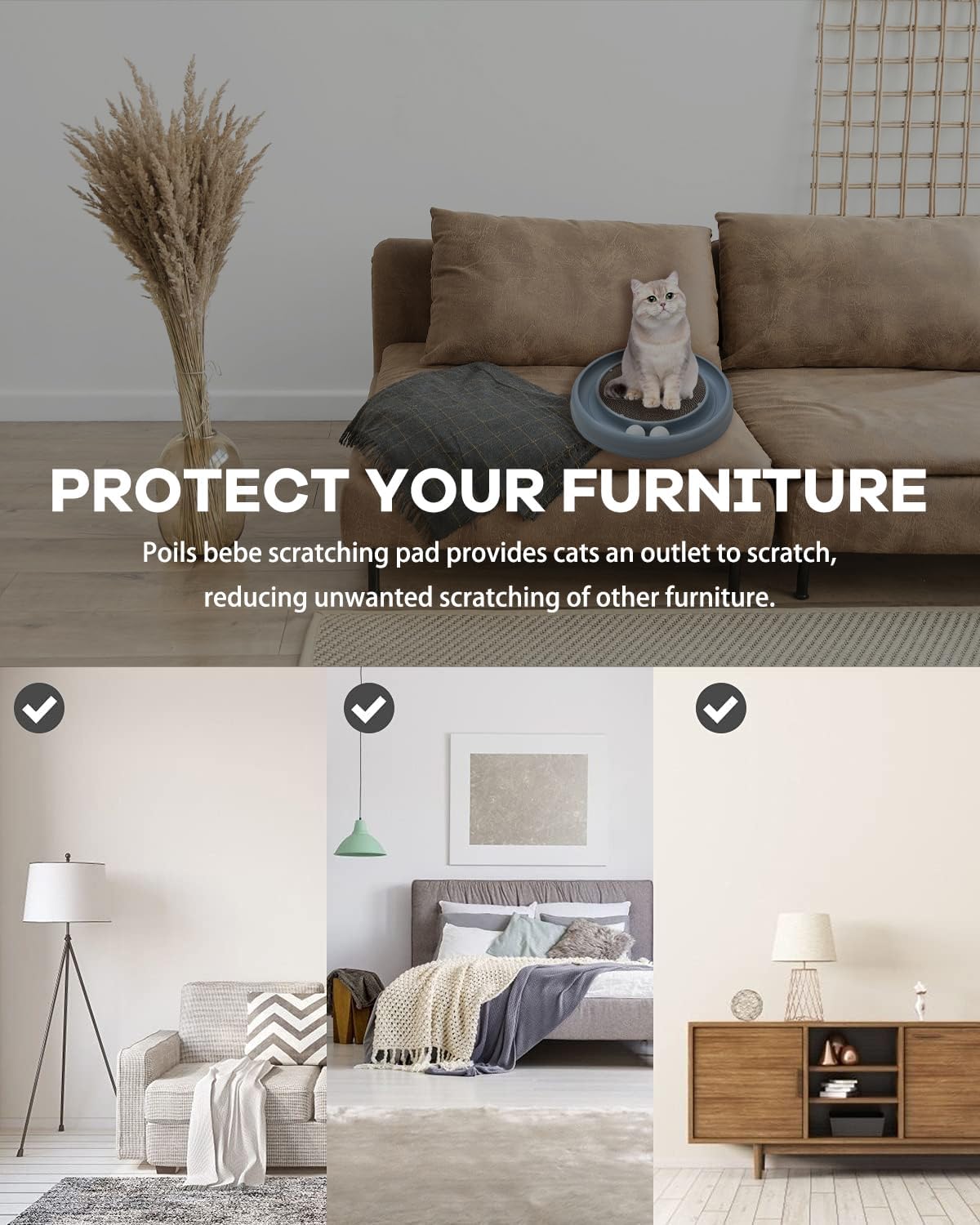 【Reversible Scratching Pad】: The center of the cat toy with a replaceable scratching pad. Satisfy your cat's natural scratching instincts and exercise for your cat while reducing potential furniture damage.Besides Maximize the life of the scratcher by flipping it over for a brand new scratching surface.