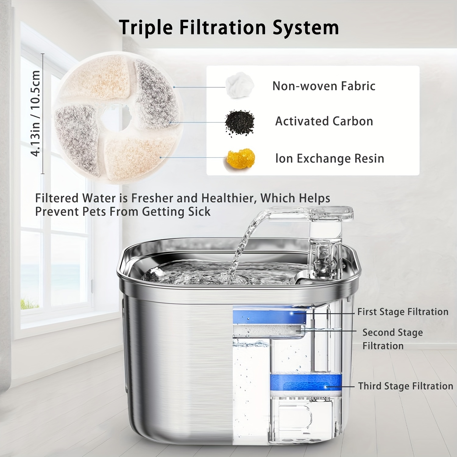 Cat Water Fountain, Stainless Steel Pet Water Fountain For Cats Inside, 3 Filters&Ultra-Quiet Pump, 73oz Automatic Dog Dispenser Water Bowl, Multiple Pets Water Fountain