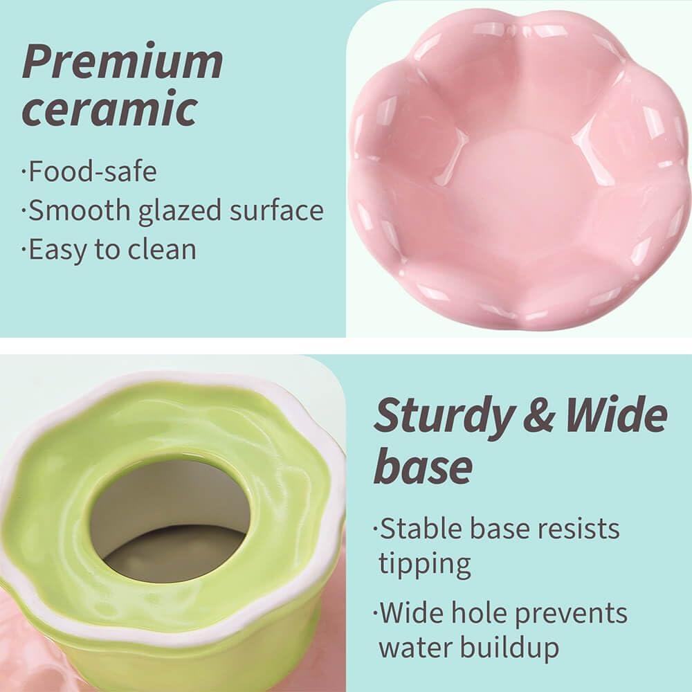 • Cute Flower Shaped: The cat feeder features a unique flower design, adding style to your home decor while providing a safe bowl for your cats