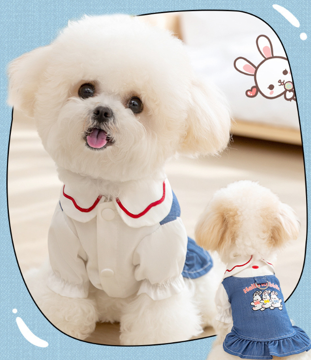 Color: Bundy blue rabbit Peter Pan collar dress, Bundy blue bear suspender skirt, light blue Bundy blue skirt