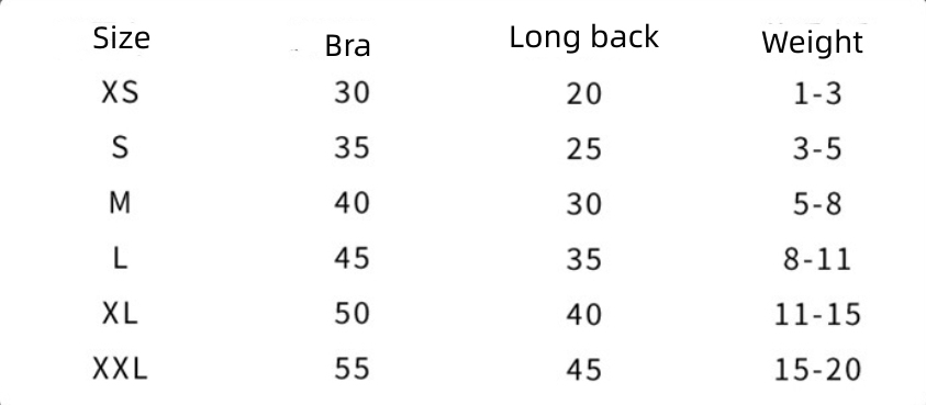Size: XS (recommend weight 0.50 kilograms-1.50 kilograms, S (recommend weight 1.50 kilograms-2.50 kilograms, M (recommend weight 2.50 kilograms-4.00 kilograms, L (recommend weight 4.00kg-5.50kg, XL (recommend weight 5.50kg-7.50kg, XXL (recommend weight 7.50kg-10.00kg