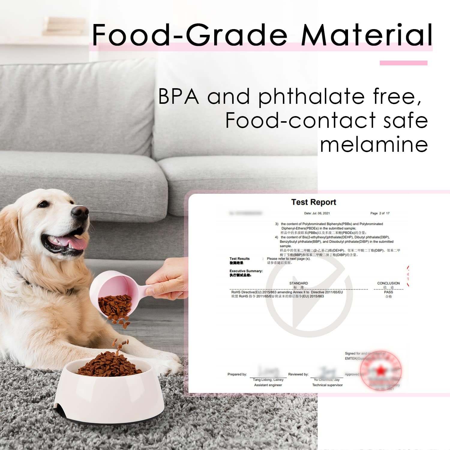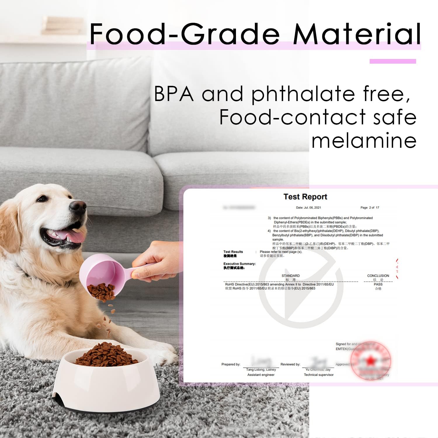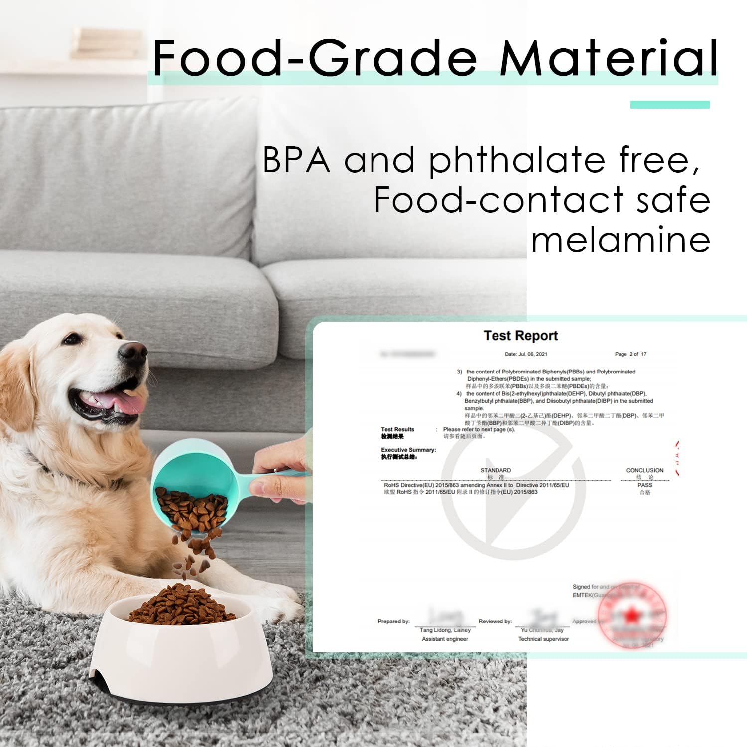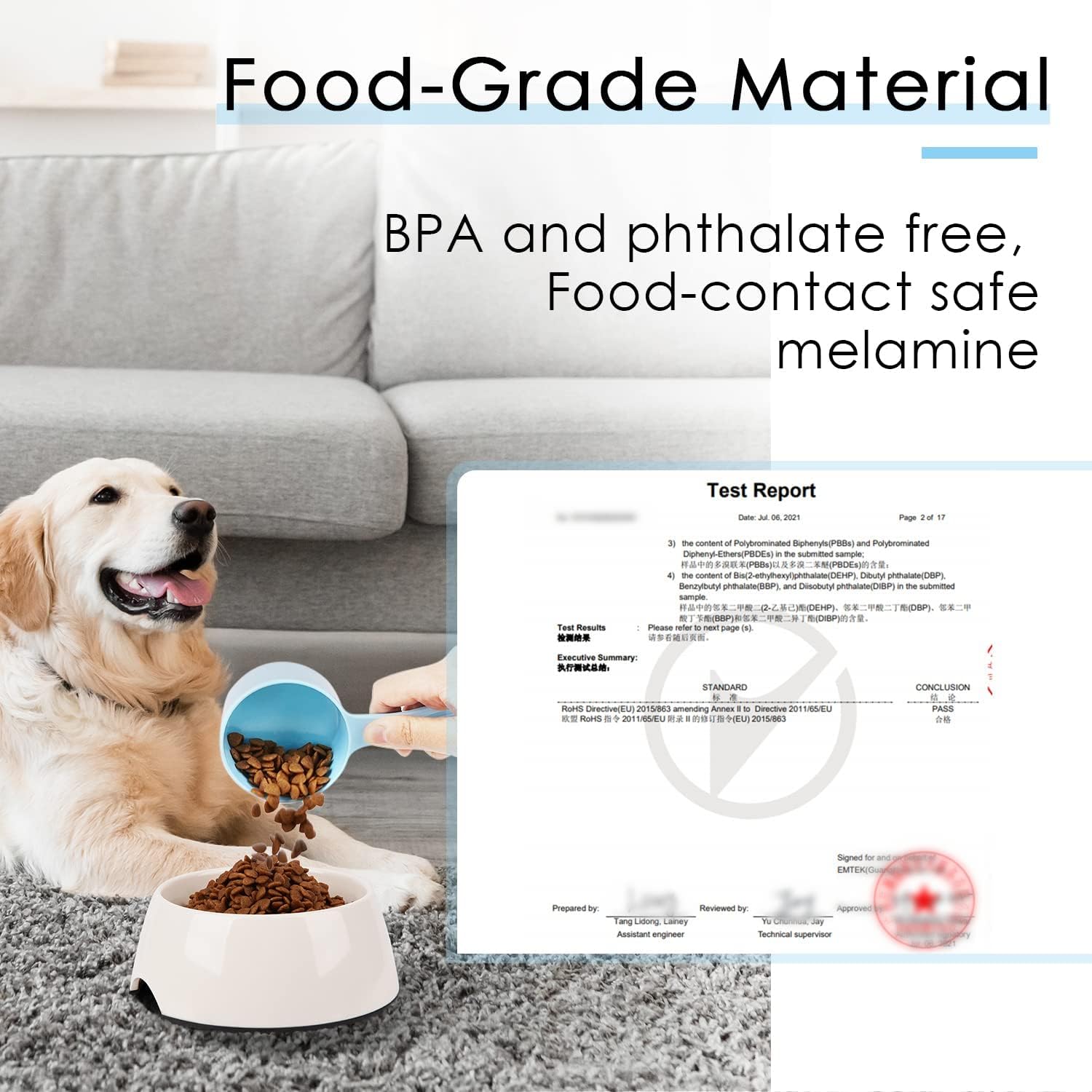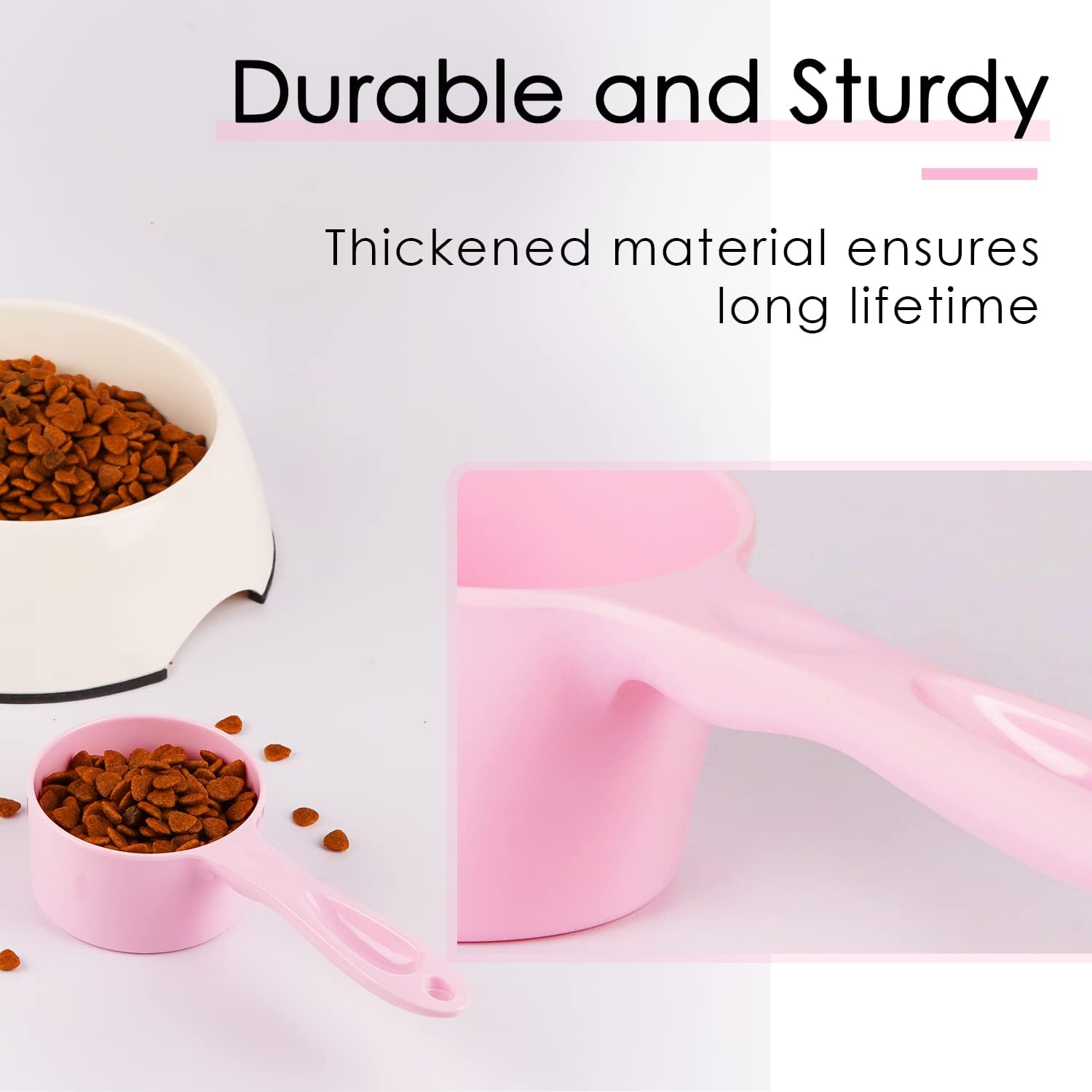 [ HIGH QUALITY MATERIAL ] - Unlike fragile plastic scoops, our dog food measuring scoops are made of high quality melamine. The material is sturdy and durable, not easy to deform or break, ensuring long-lasting use.