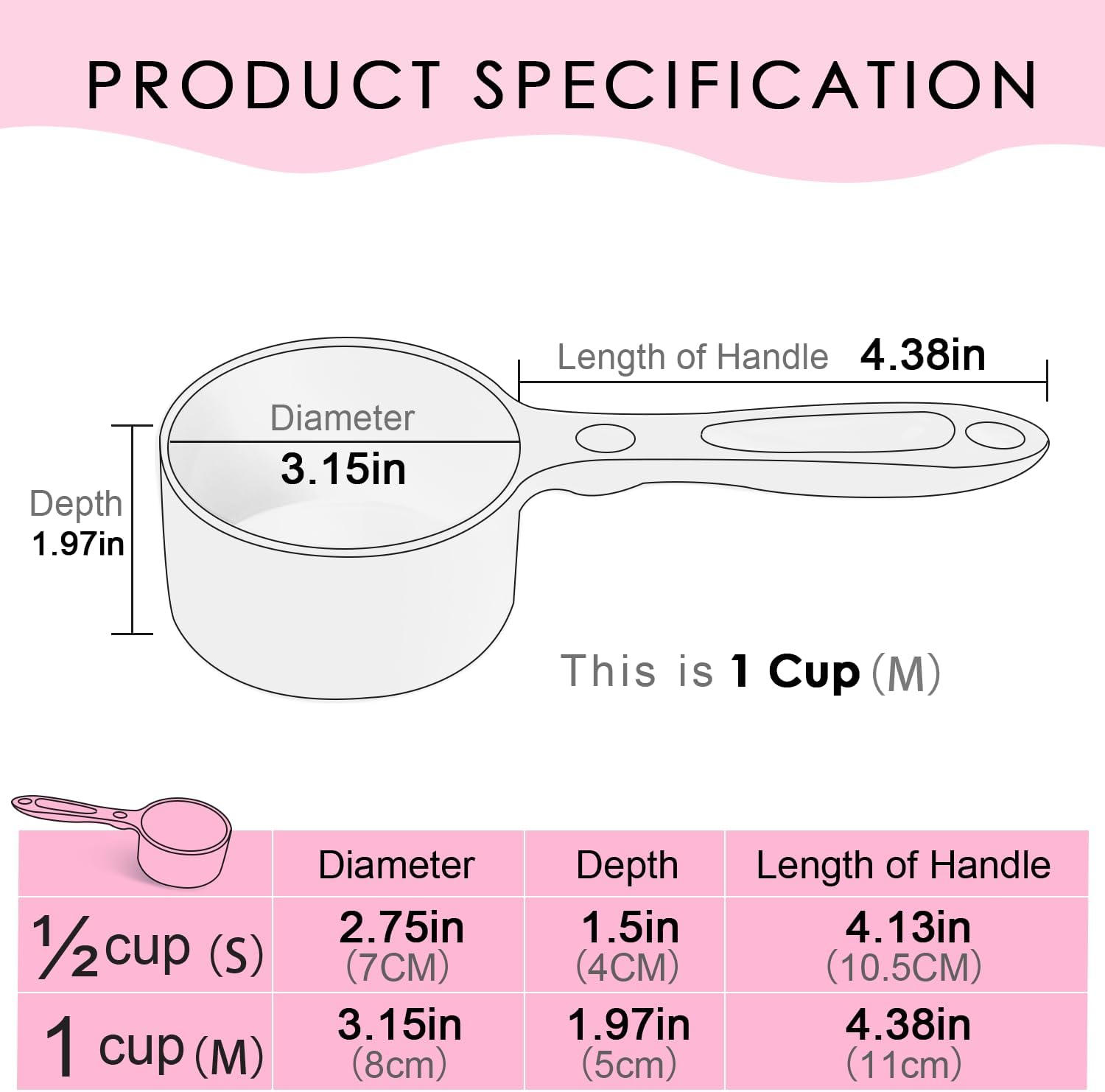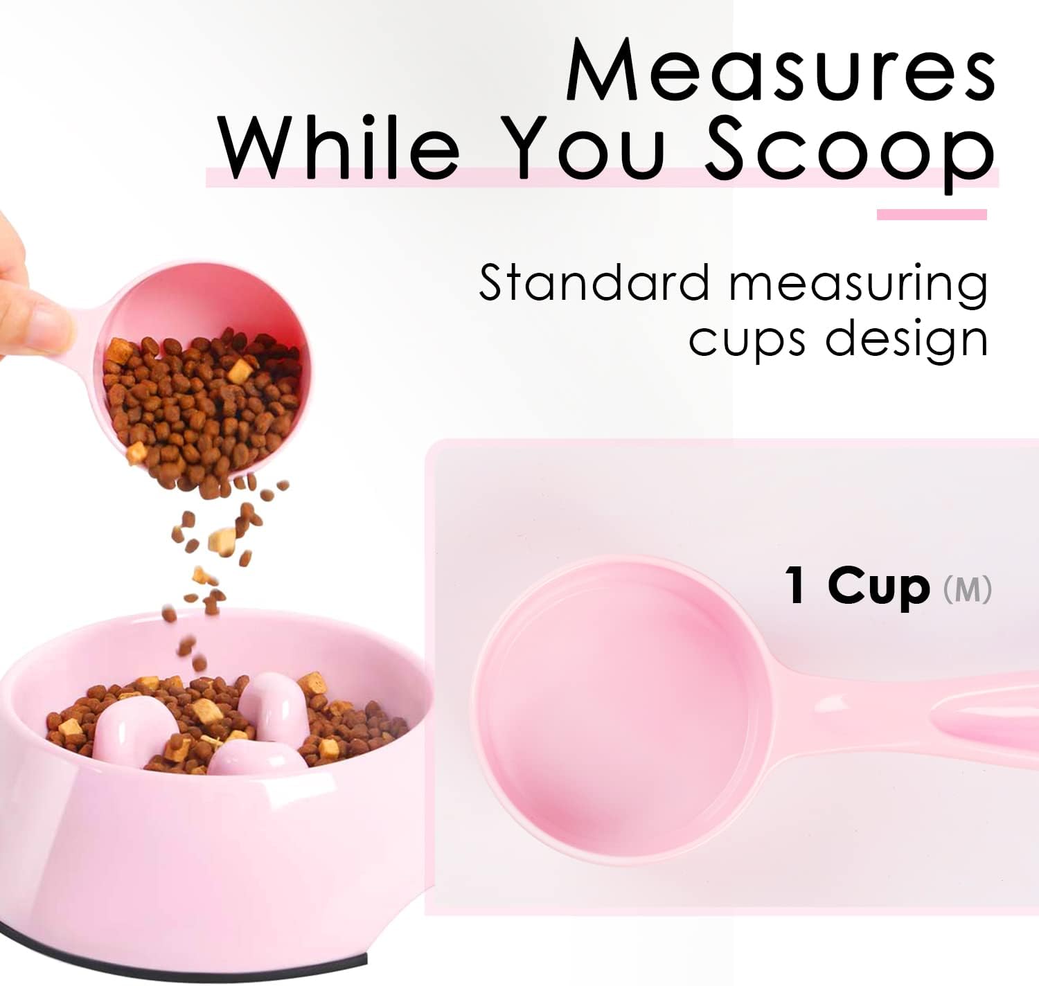 [ 1/2 Cup Capacity ] - The pet food scoop measures 1/2 cup capacity (1.76 oz). It is used to measure pet food proportion exactly to make a standard diet.