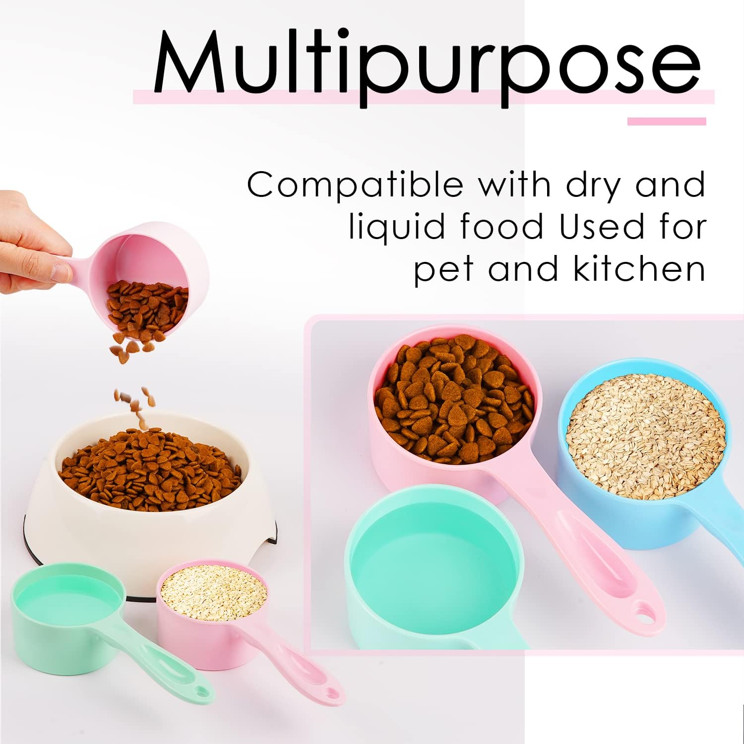 [ WIDE APPLICATIONS ] - Our food scoops can be used to measure the amount of dry or wet food for pets (dogs, cats, rabbits, etc.), meeting the needs of a wide range of animals. It can also be used as a kitchen utensil.