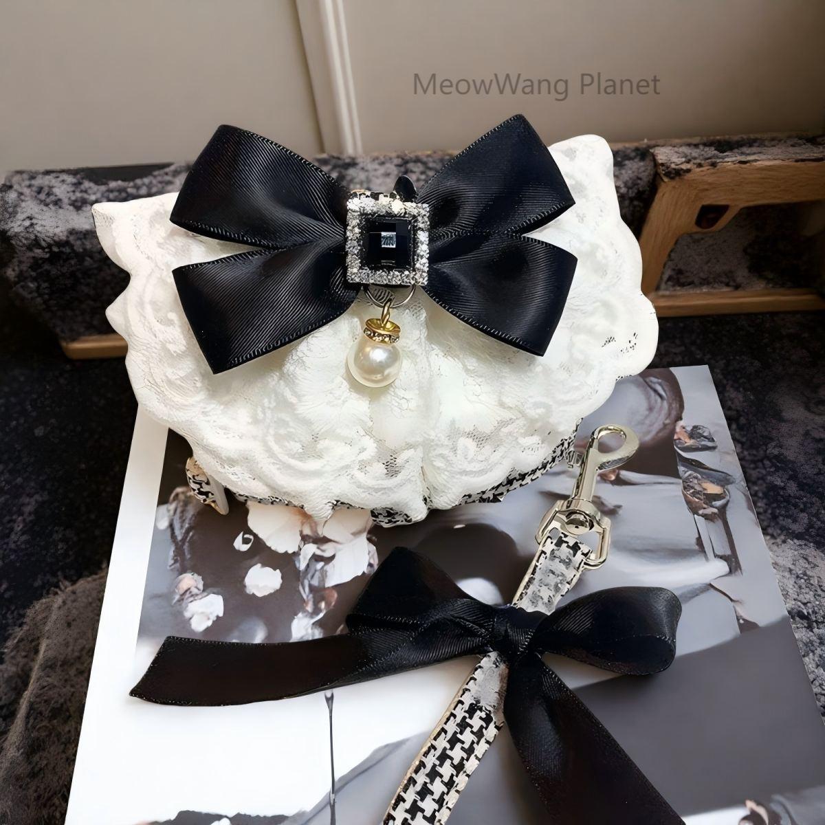 High-end lace-accented harness and matching leash designed for comfort, safety, and sophisticated style, perfect for fashionable pets. Inspired Elegance – Delicate lace trim and refined detailing give a couture look to your pet’s walking gear. Escape-Proof Secure Fit – Wrap-around vest design keeps pets safe during walks without restricting movement. ️ Fully Adjustable – Straps adapt for a perfect fit on kittens, puppies, and small-breed dogs. Lightweight & Breathable – Soft fabric gentle on fur, comfortable for year-round wear. Ideal for Fashion-Forward Pets – Perfect for strolls, special events, travel, or stylish photoshoots. Take your pet outdoors in refined comfort with this lace harness and leash set — a perfect balance of safety, high fashion, and everyday practicality.