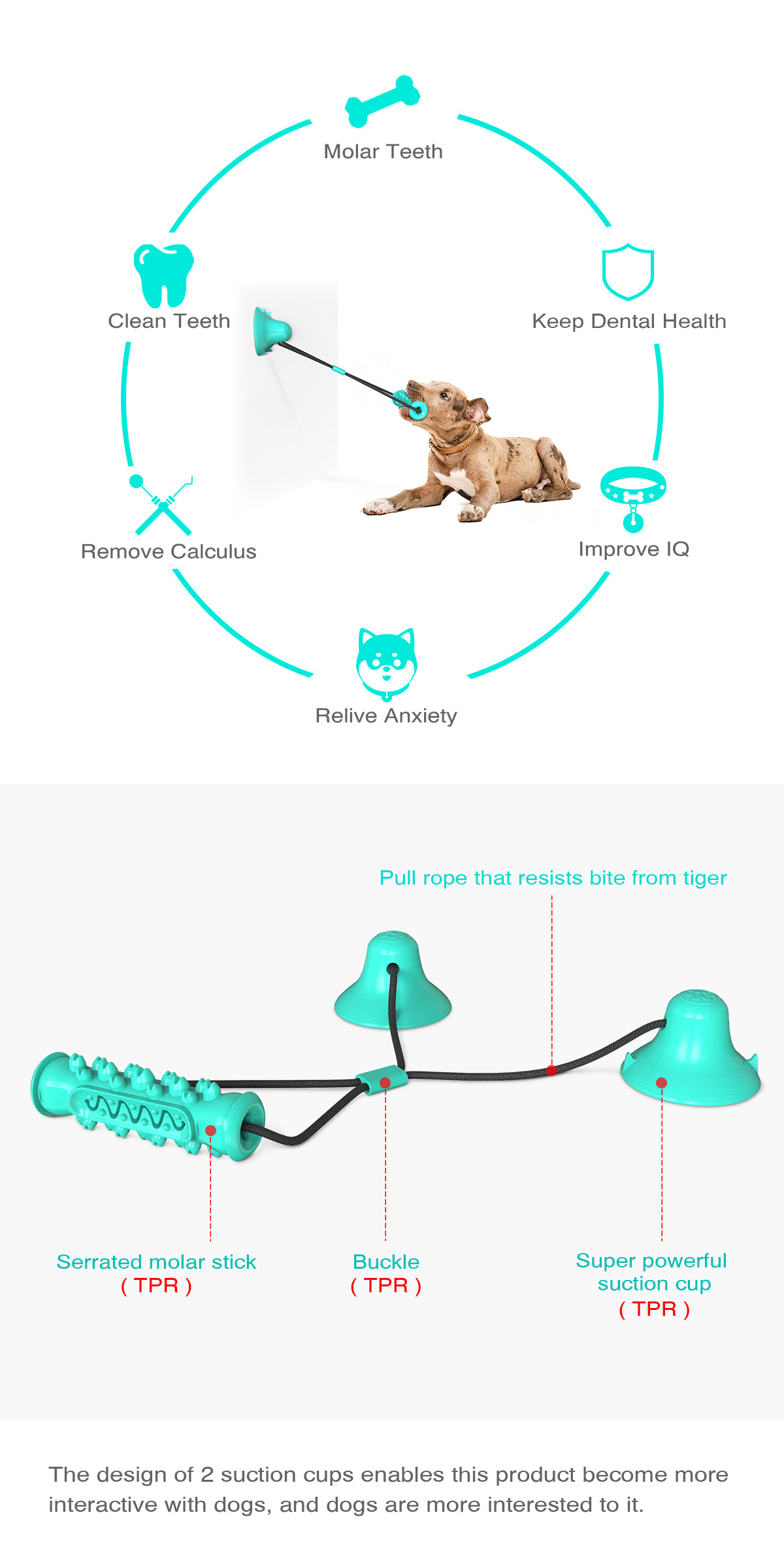 Double suction cup pull dog toy molar