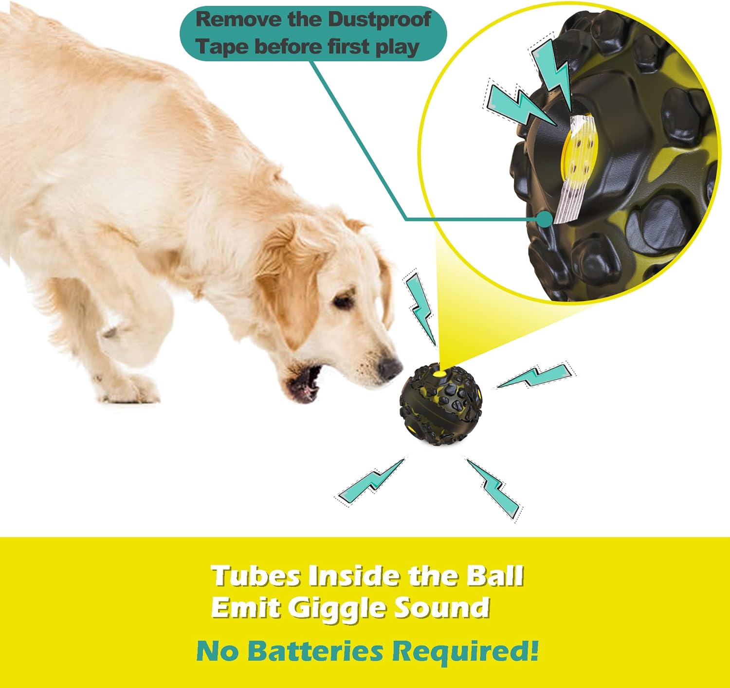 FUNNY GIGGLE SOUND - Dogs know best in choosing their toys. This wobble ball dog toy for aggressive chewers will make a fun giggle sound to attract your dog's attention when rolled or shaken, which will keep your dog entertained for hours inside or outside. It will become their favorite toy in no time. It does not require any batteries thanks to the internal tube noisemakers inside the ball.