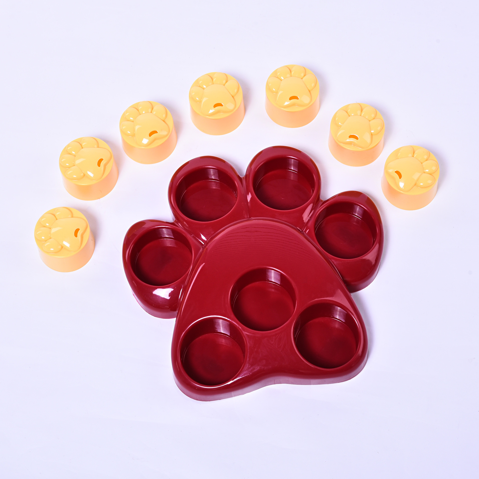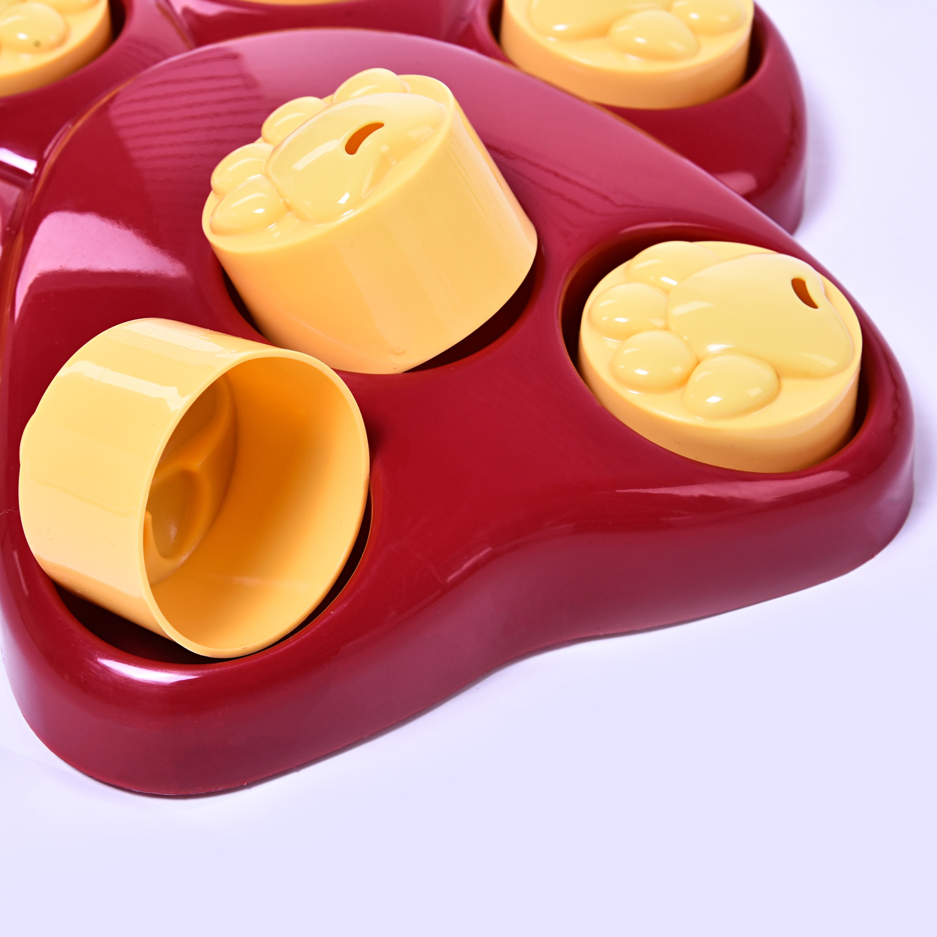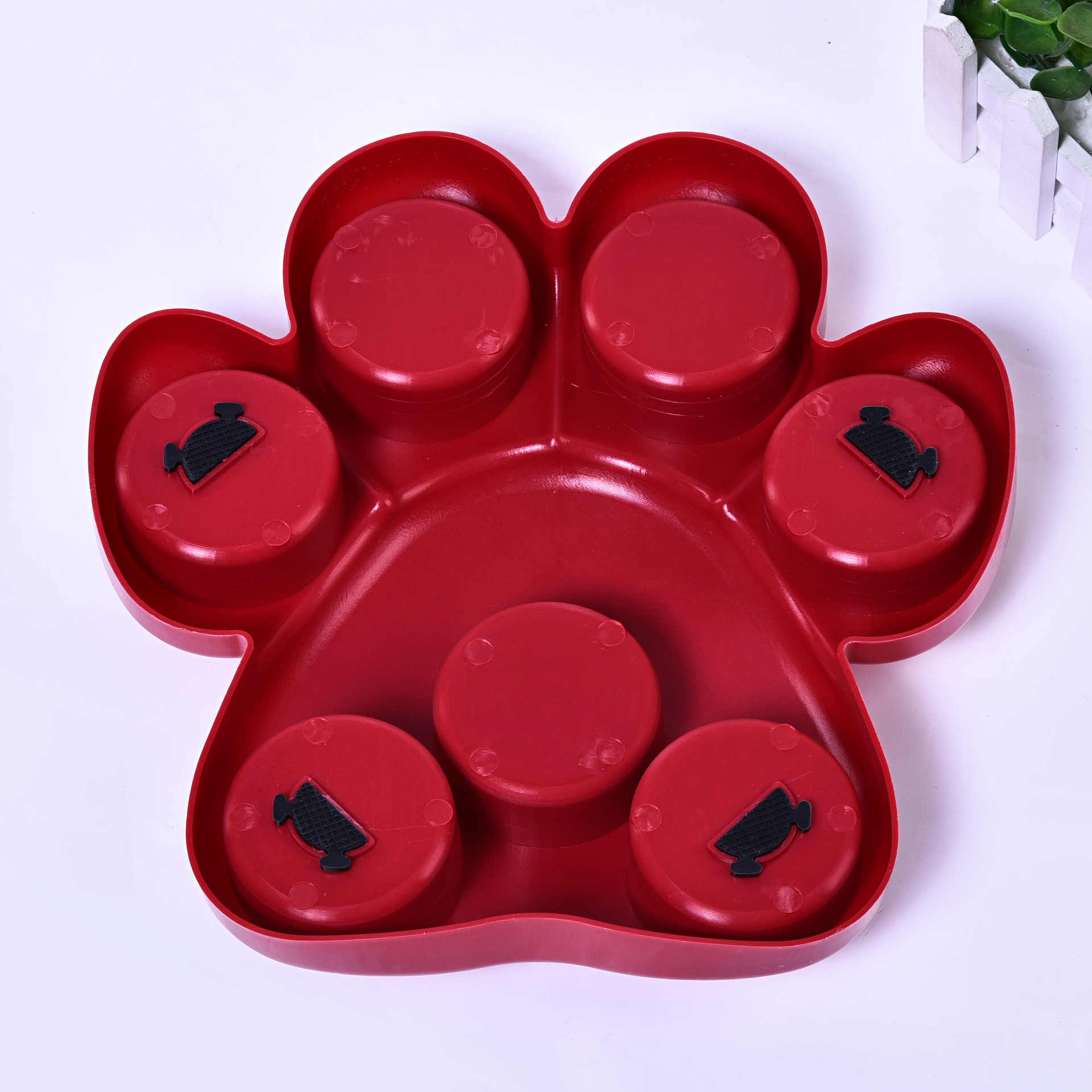 Hide food in the food cavity, cover the lid to let pets find food by smell, love pets use arching, scratching, biting and other behaviors to open the lid to eat, effectively exercise the pet's sense of smell and the ability to find food, the bottom of the box is non-slip The pad design prevents the food container from shifting and tipping over!