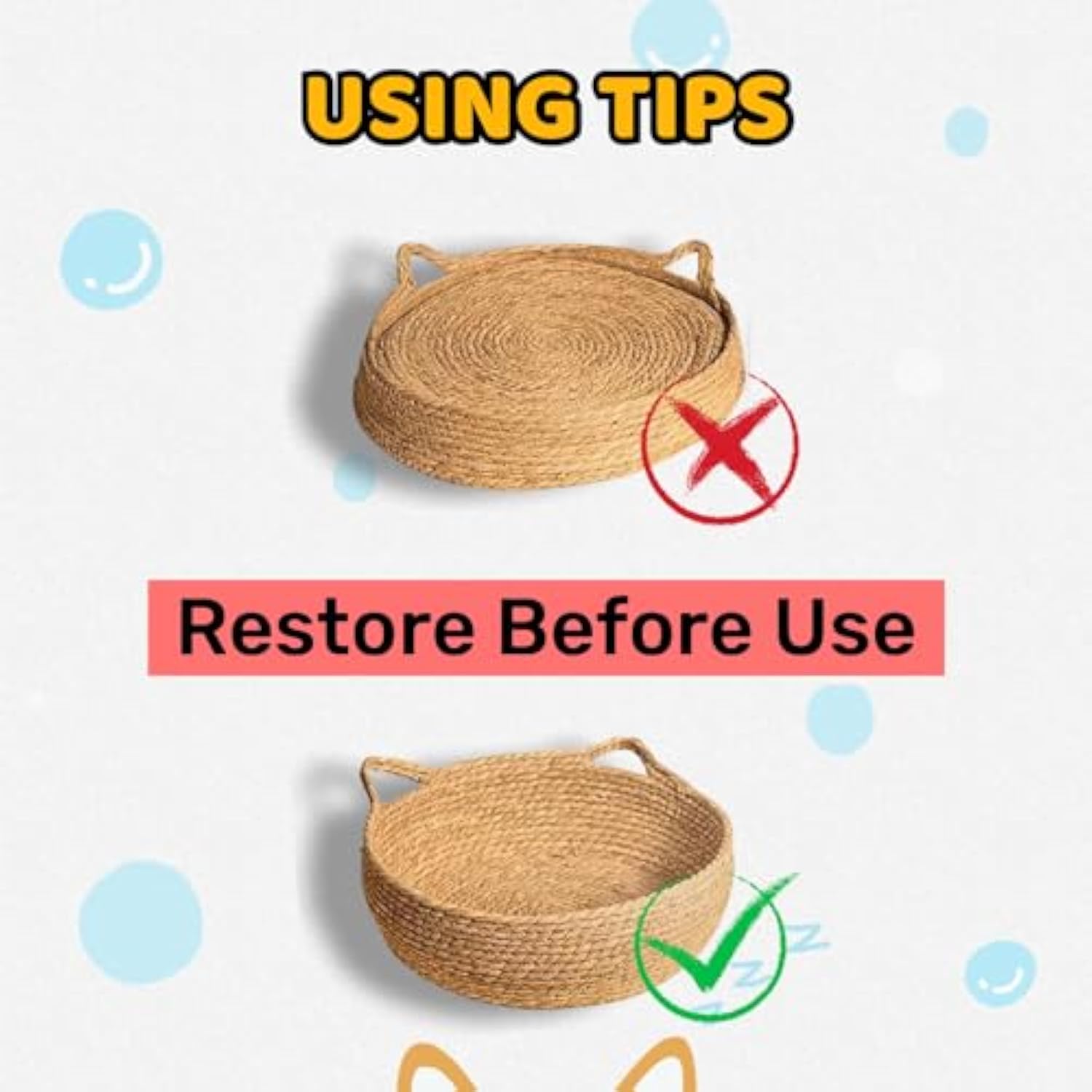 Natural Woven Cat Bed With Soft Cushion, Handmade Braided Cattail Leaf Pet House, Eco-Friendly Straw Nest