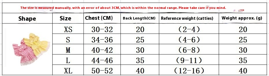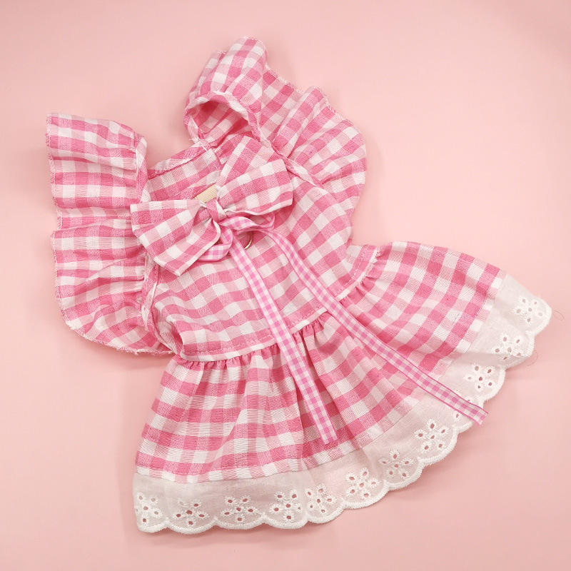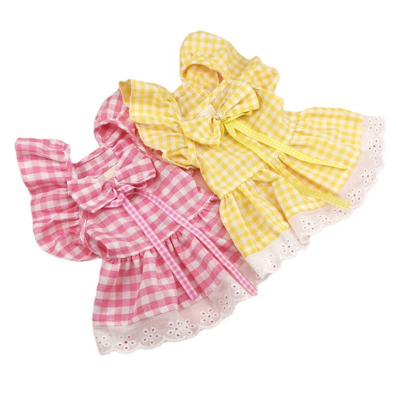 Color: Pet skirt-yellow plaid fly shoulder sleeve, pet skirt-pink plaid fly shoulder sleeve, pet skirt-blue plaid fly shoulder sleeve, pet skirt-pink plaid fly shoulder sleeve