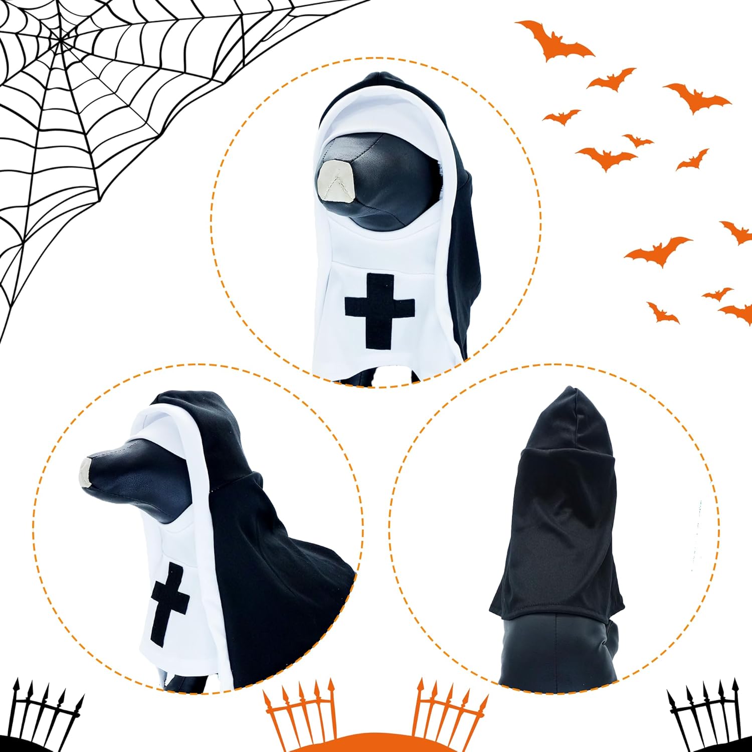 Size Note: Please pay attention to the new size chart! There are a total of 3 sizes(S-L) to choose from. Please measure your pet's size, especially head circumference, in advance according to the size chart. The Halloween dog nun clothes are suitable for small medium dogs and cats.