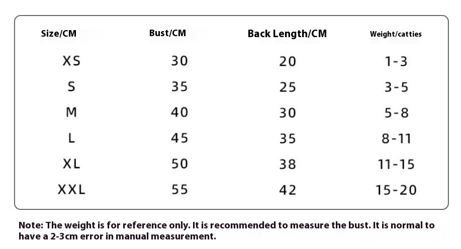 Size: XS (recommend weight 0.50 kilograms-1.50 kilograms, S (recommend weight 1.50 kilograms-2.50 kilograms, M (recommend weight 2.50 kilograms-4.00 kilograms, L (recommend weight 4.00kg-5.50kg, XL (recommend weight 5.50kg-7.50kg, XXL (recommend weight 7.50kg-10.00kg